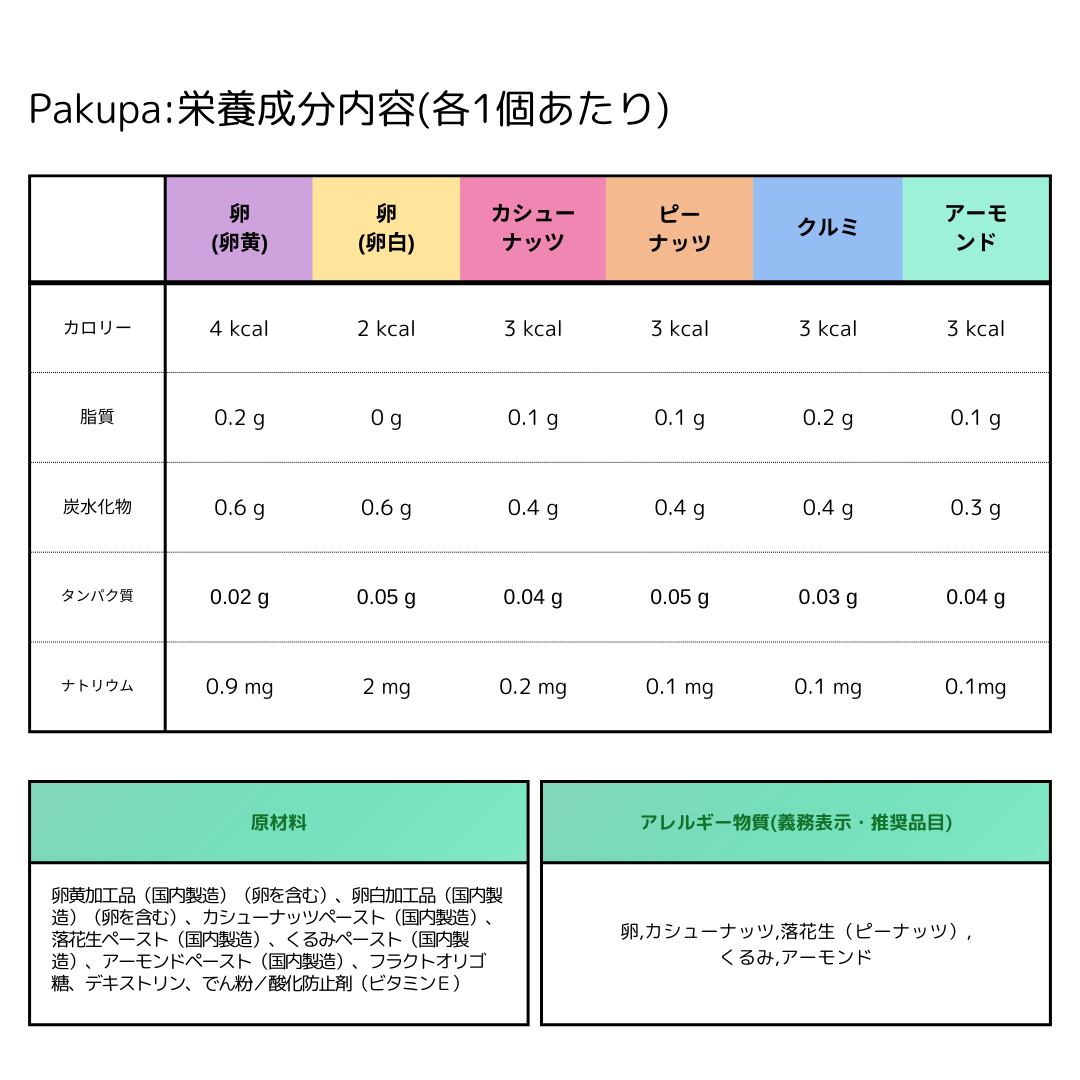※Pakupaを摂食後、発疹・嘔吐などのアレルギー症状が出た場合は、ただちに使用を中止し、速やかにかかりつけ医に相談することをおすすめします。
